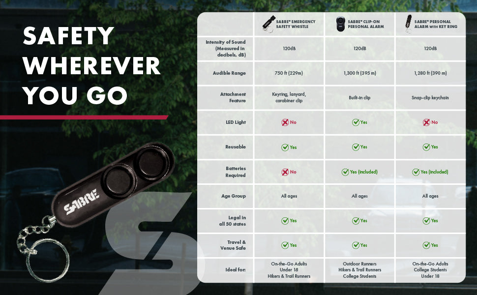 - STAY SAFE WITH FREE SAFETY TRAINING: Feel secure with every SABRE product; Packaging includes links to free training videos so that, in the face of danger, you are better prepared to use your SABRE Personal Safety Alarm